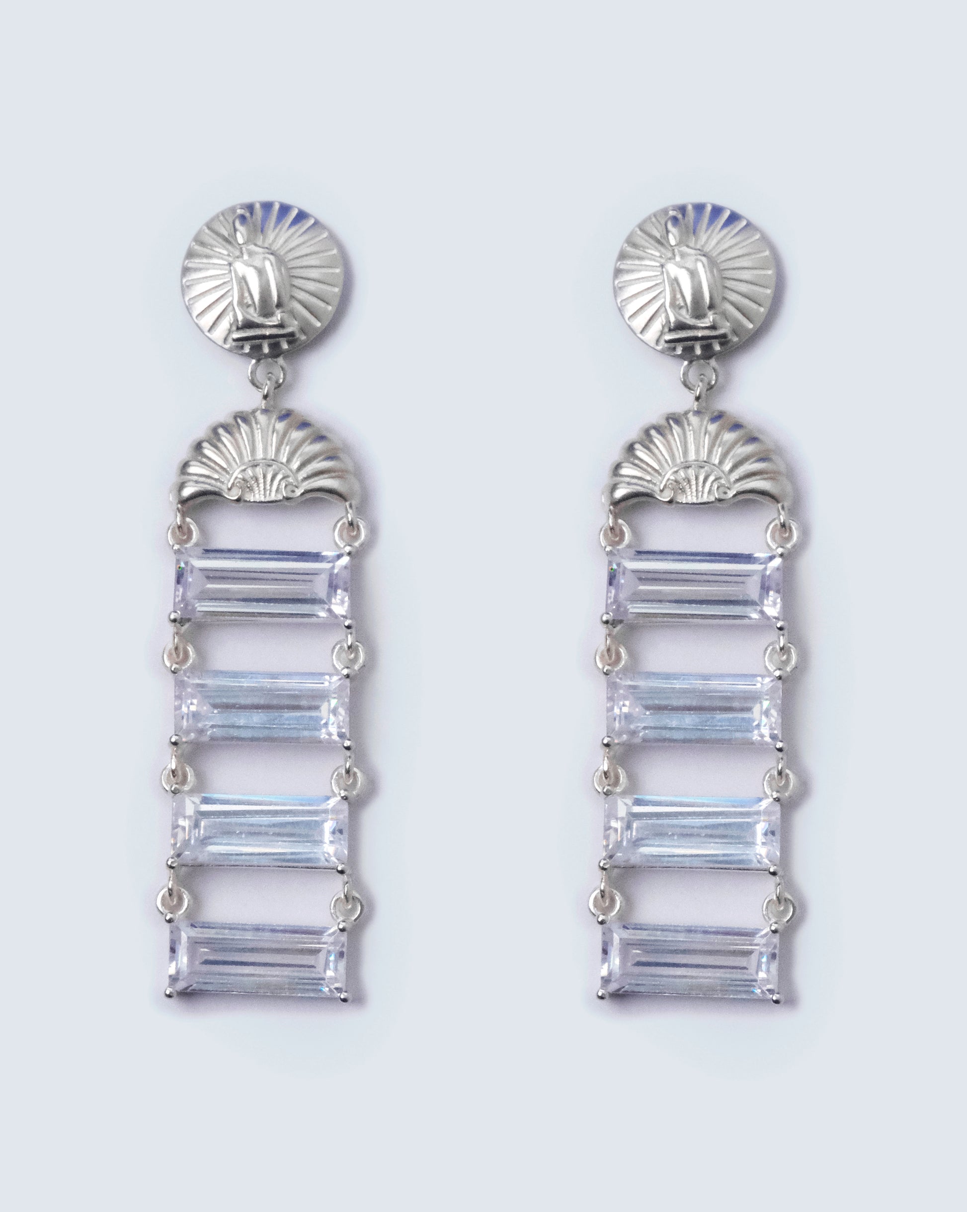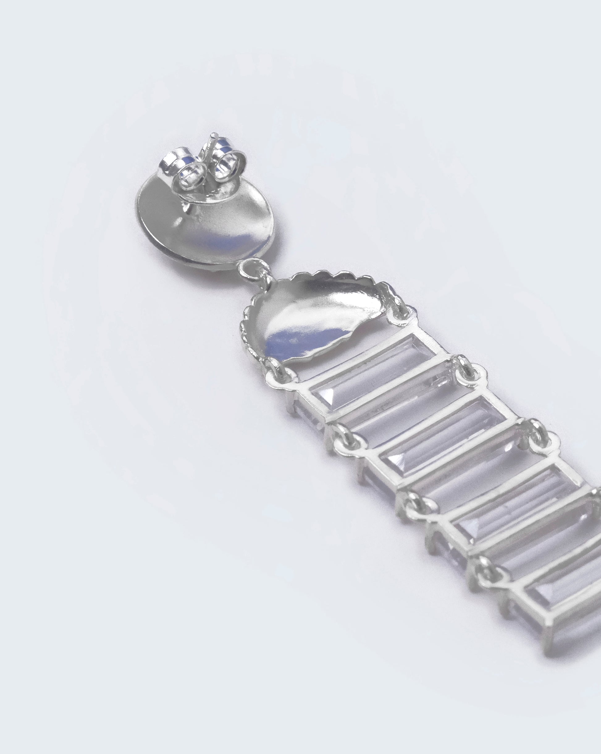 Inspired by the form of a sea-shell, with suspended white baguette crystals, the Marine Treasure earrings are sure to catch everyone's eye around you.