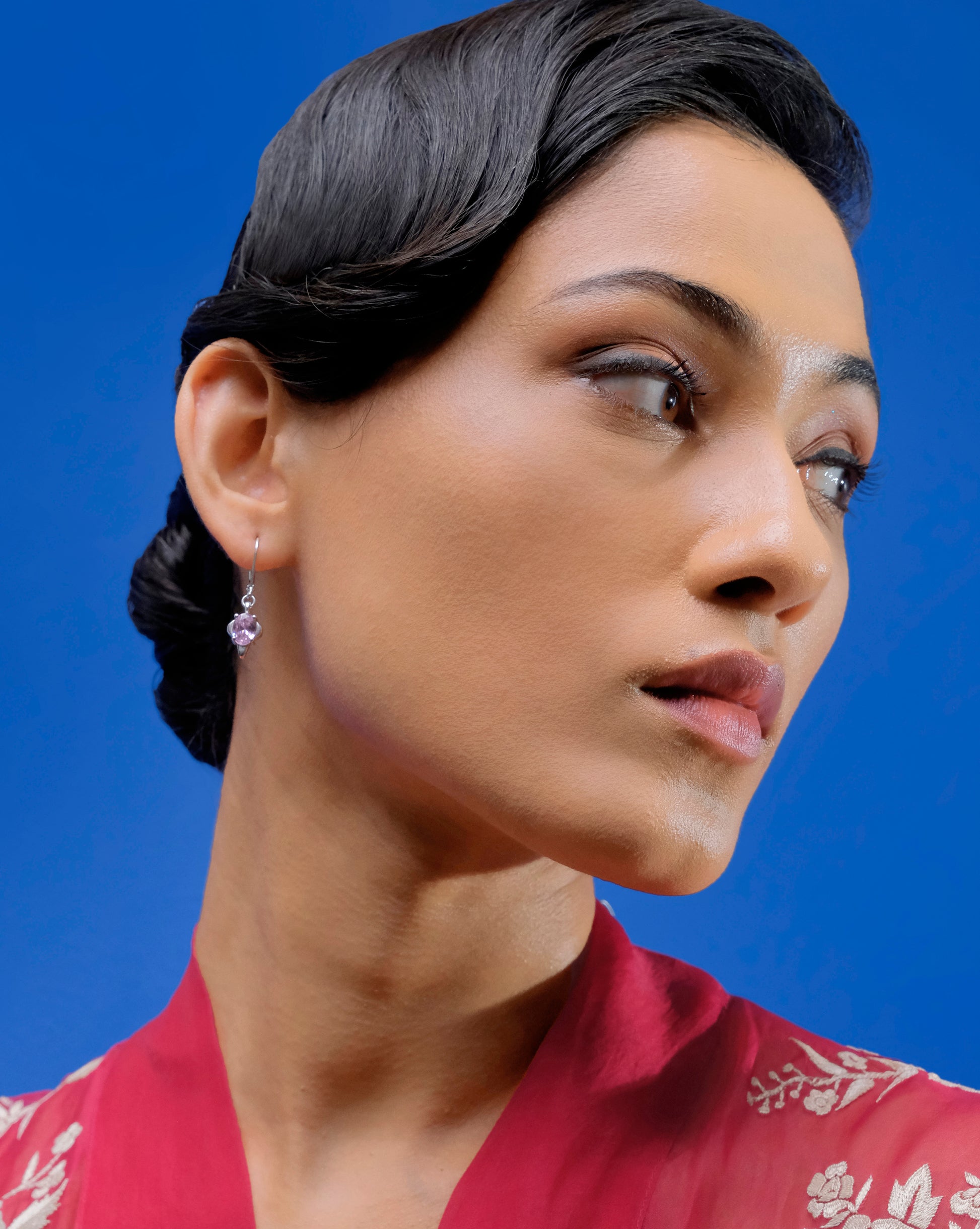 Mini pink crystals encased into tiny soft silver earrings that are dainty and romantic !