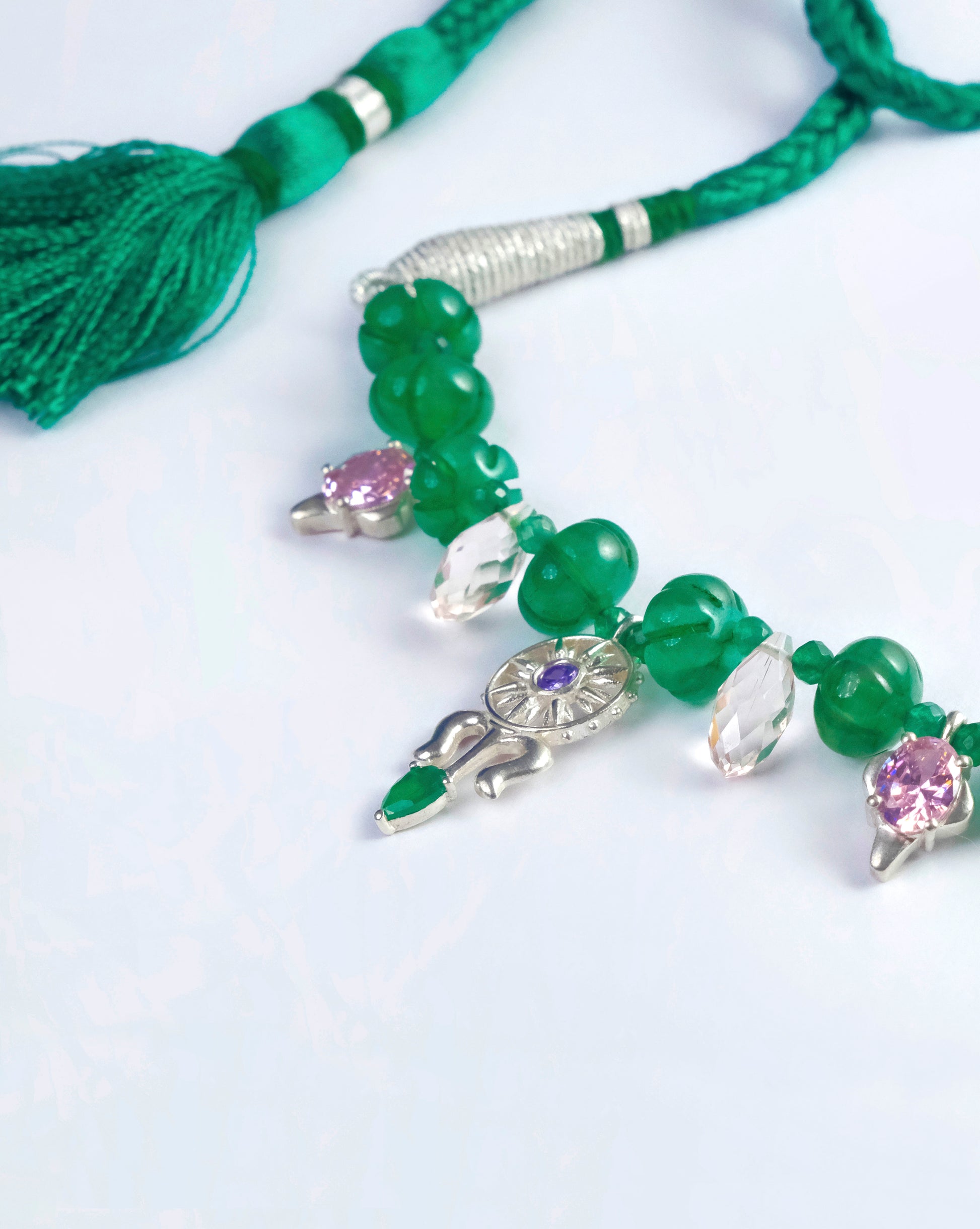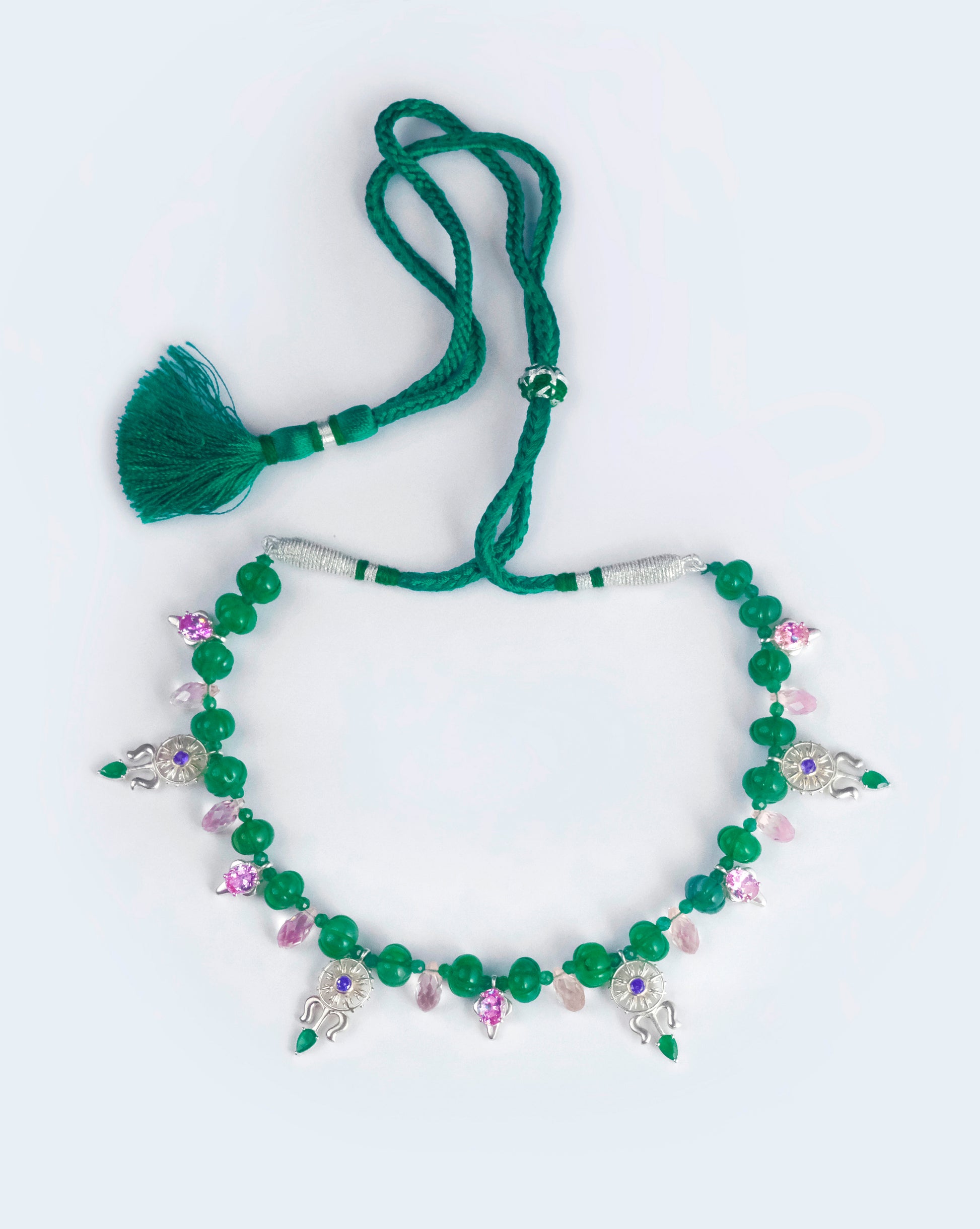 Stones: Blue & Pink Cubic Zirconia Stones & Synthetic Green Onyx Stone,