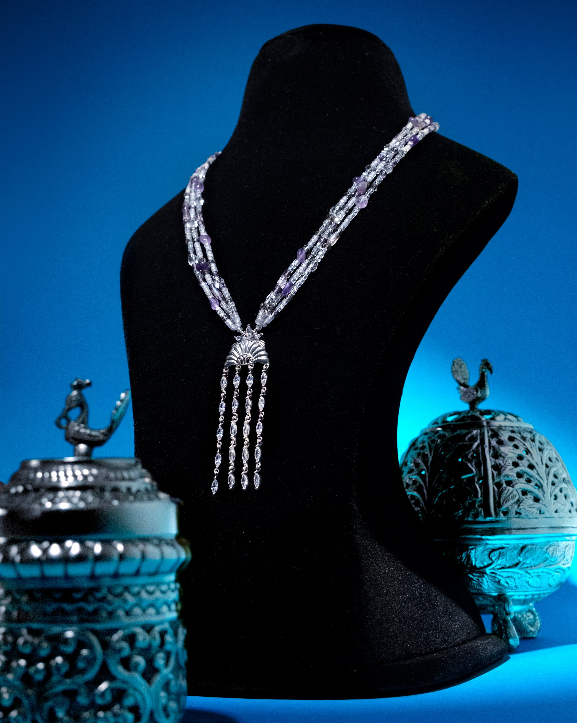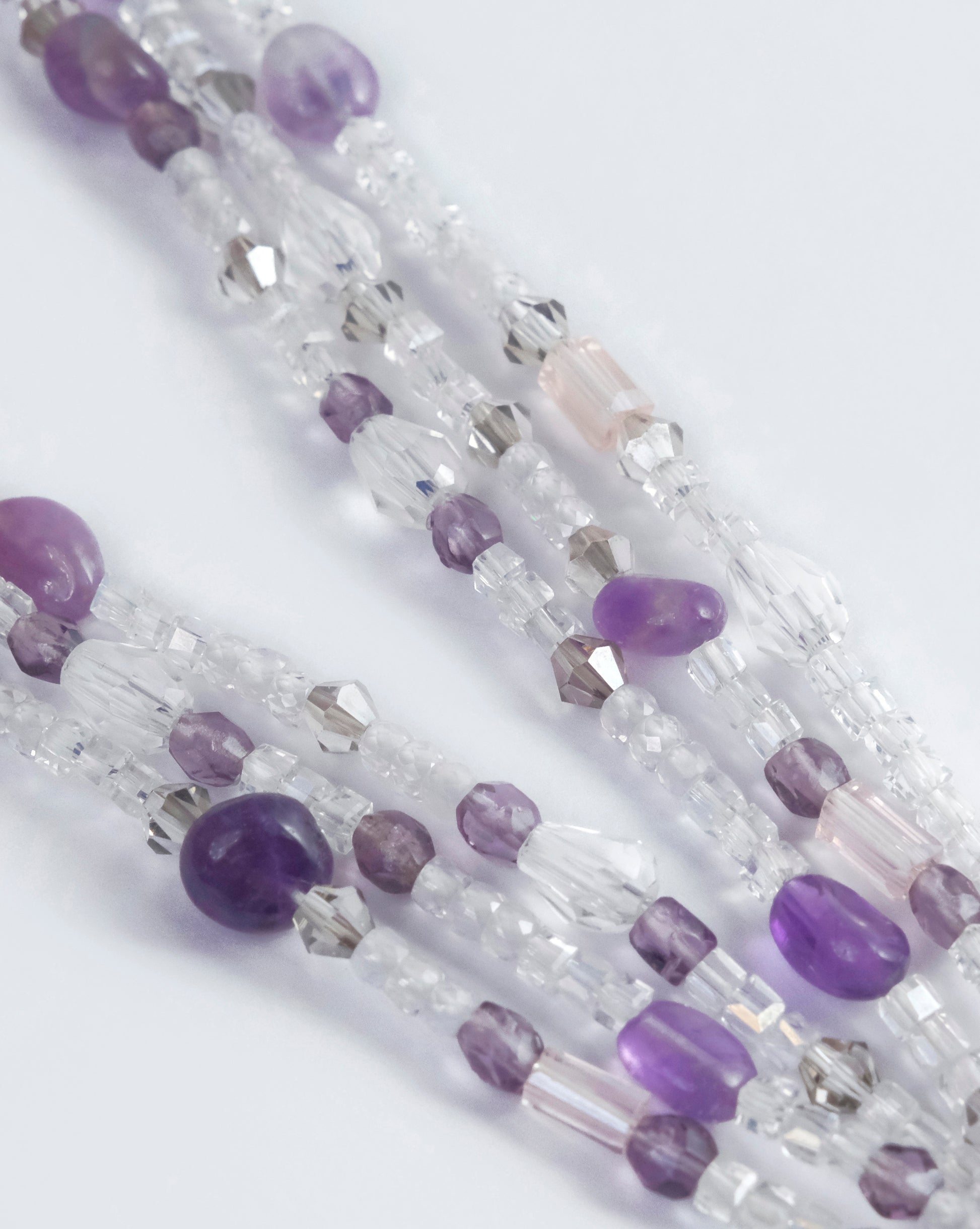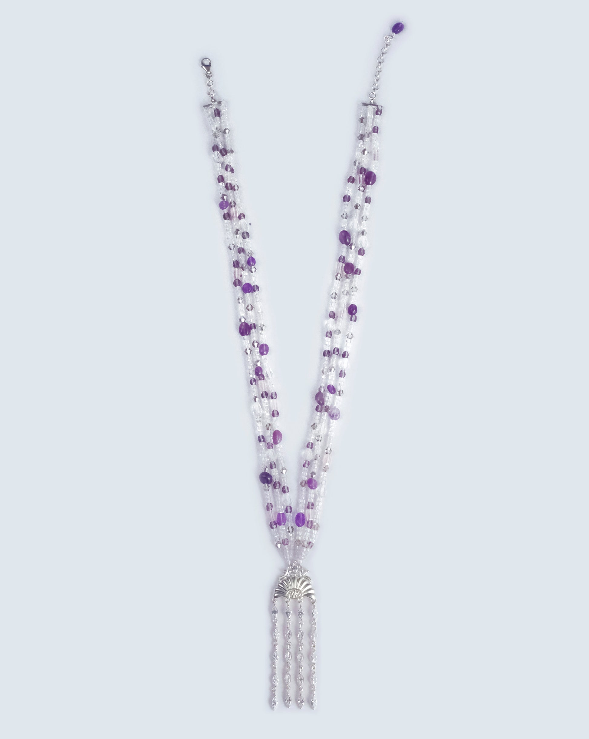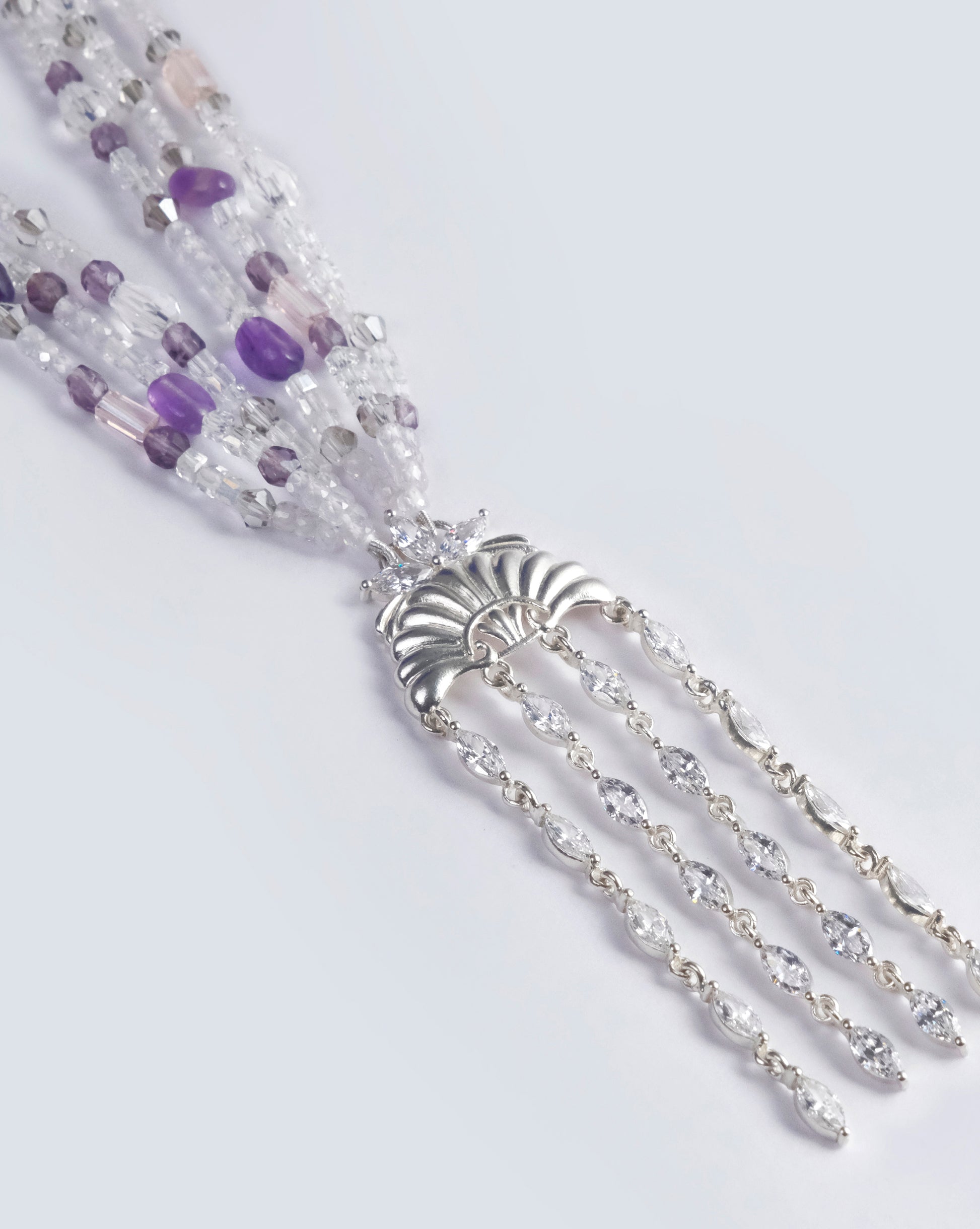 Pendant : White Cubic Zirconia stones, Beads : Mix Glass Beads, Zircon Beads & Natural Amethyst Tumble Beads.