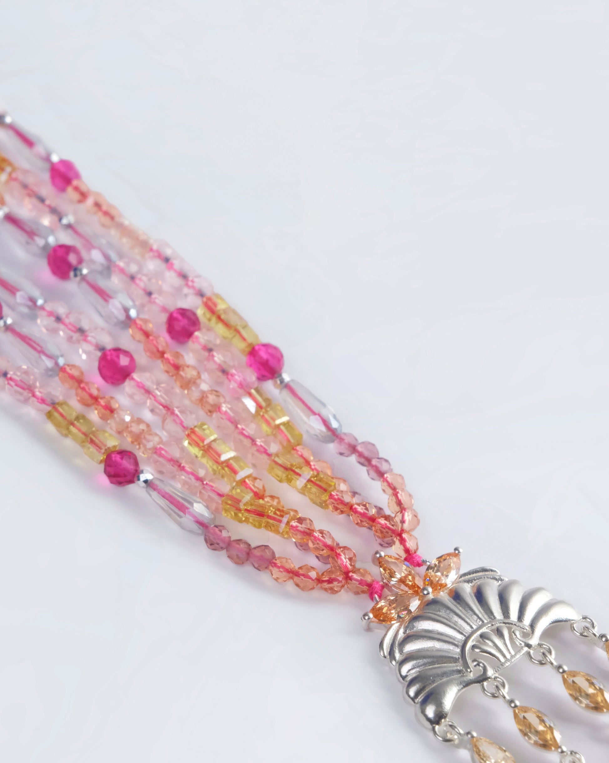 Pendant : Champagne Cubic Zirconia stones, Beads : Mix Glass Beads & Zircon Beads.