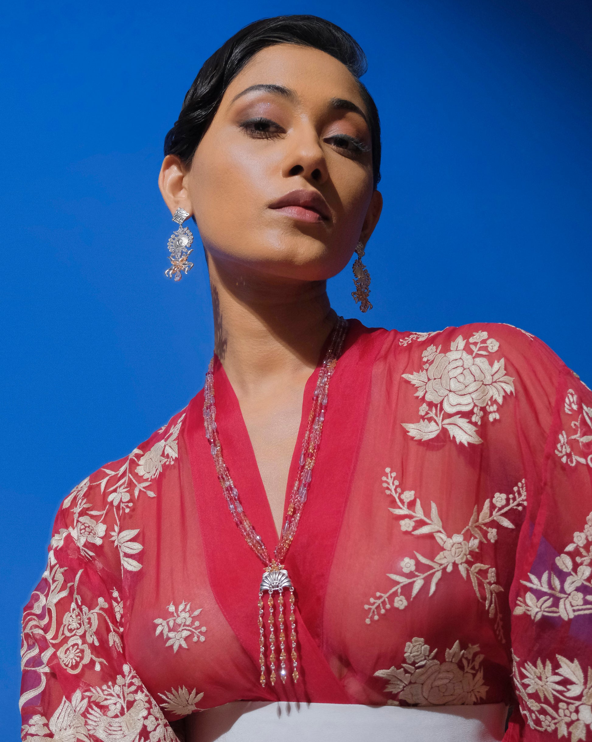 >This jewellery is made in pure 925 Silver without any goldplating or coating so please mind that the metal has a natural tendency to slowly oxidise overtime which we believe, adds beauty and aesthetic value to the jewellery. However, it can be easily cleaned or polished to regain it's natural shine. >This is Apara Disum's modern take on a traditional Indian 'Rani Haar', that's usually longer and falls on top of the blouse, saree or any other outfit. Please carefully note the length of the necklace as mentioned in the product descritption.
