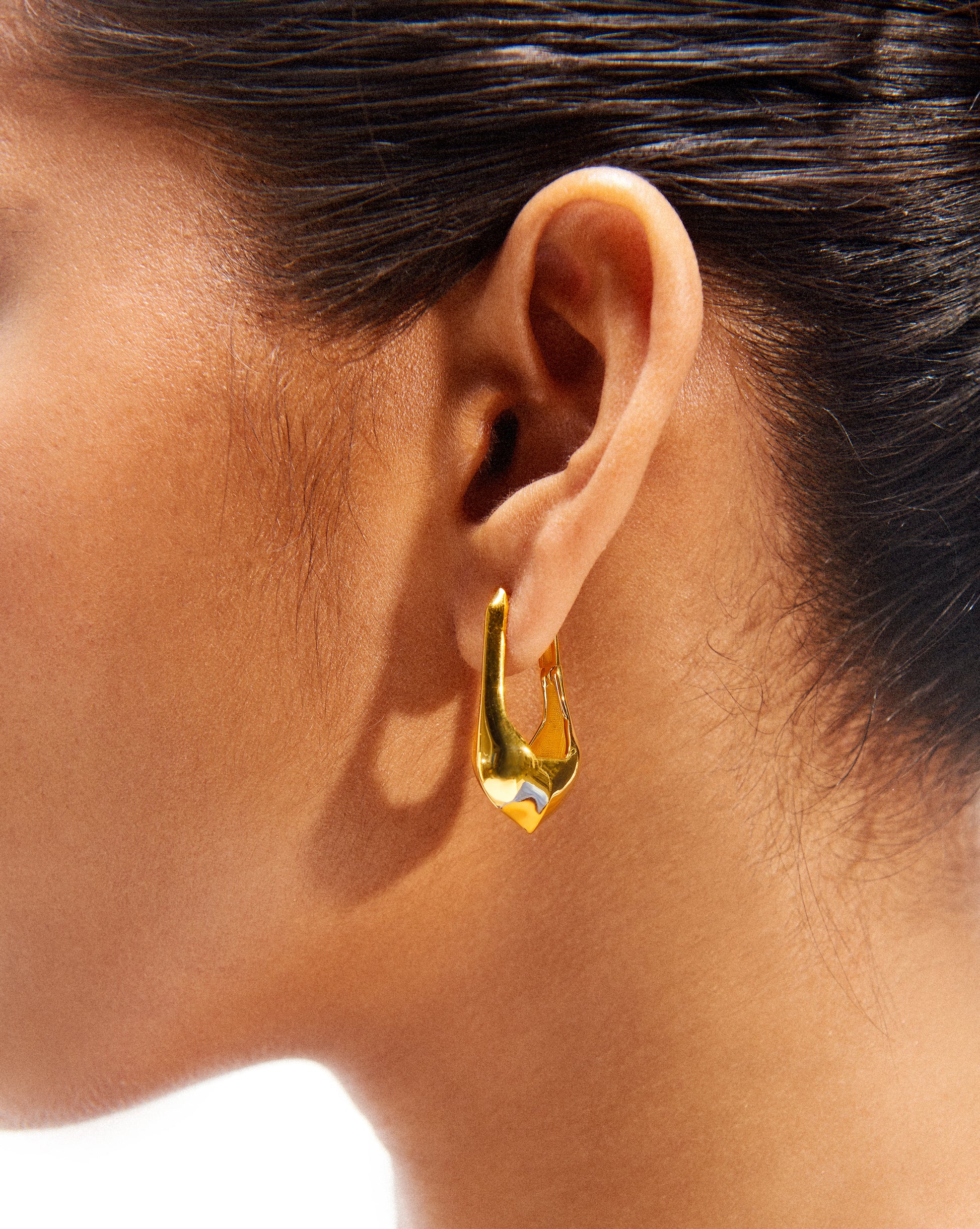 These hoops are shaped like a splendid dome of a mausoleum, that shines and reflects light from within. The fluidic shape and form-lines make this earring such a unique design marvel. Lightweight and super versatile, these hoops are a must-have wardrobe staple for everyone looking for a classic and timeless piece of jewellery, that can be worn anyday, anywhere.