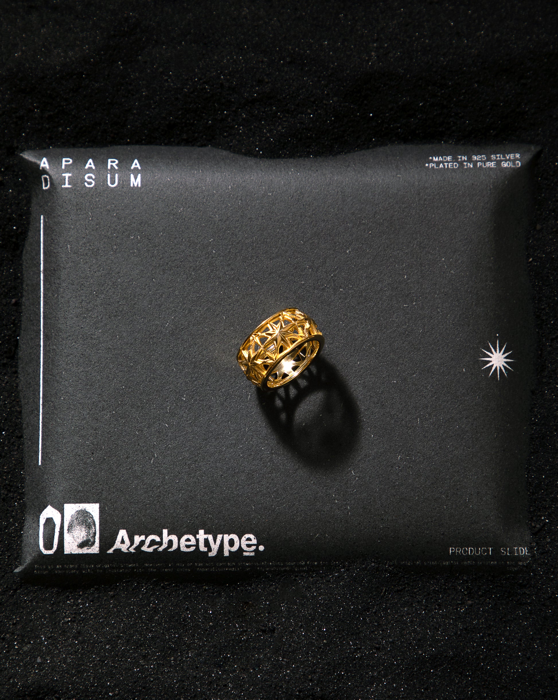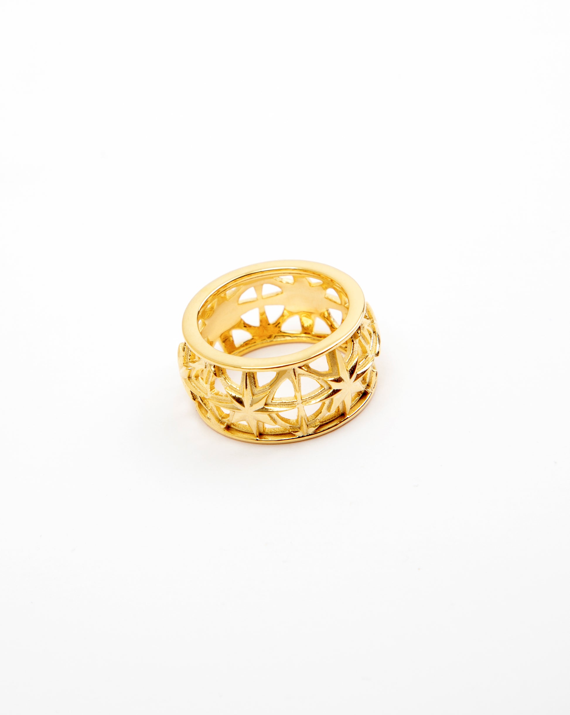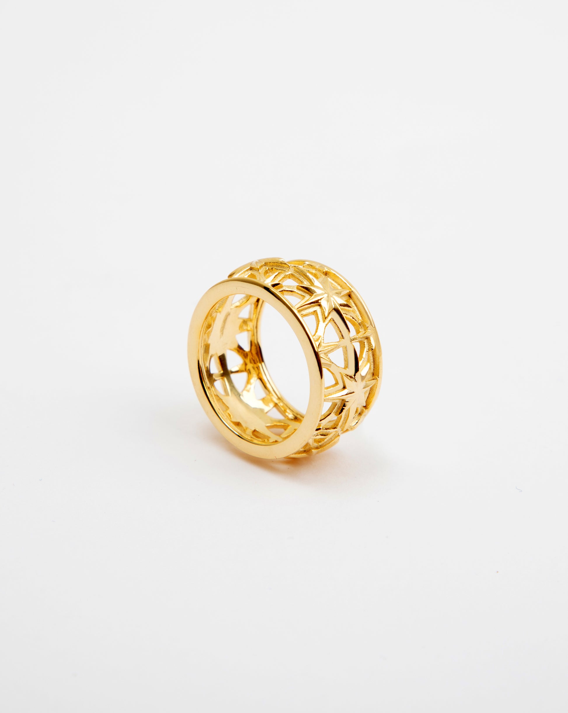 A unique jaali pattern inspired by Persian Latticework comes to life with the shiny goldplated surface of this ring.